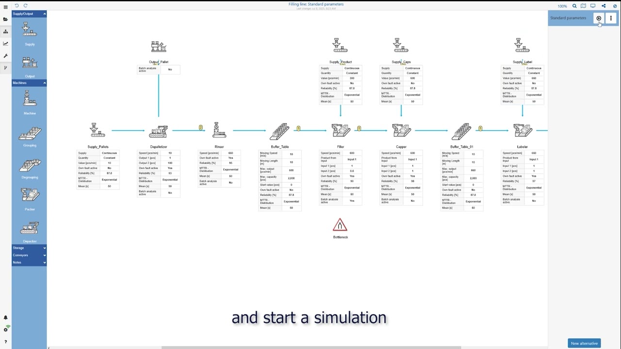 Optimise your processing and packaging systems with SimPacSi! In this short video, we show you how you can create and simulate a model of your system with just a few clicks – ideal for planning and optimisation projects.