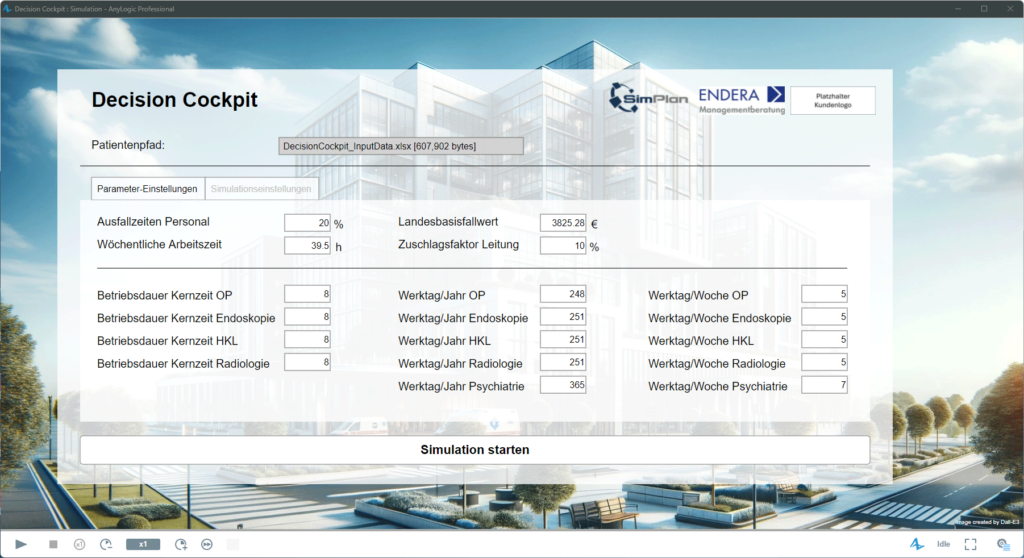 In diesem Vortrag präsentieren wir ein Decision Cockpit, das auf dem Simulationswerkzeug AnyLogic basiert und speziell für strategische Fragestellungen im Krankenhaus entwickelt wurde.